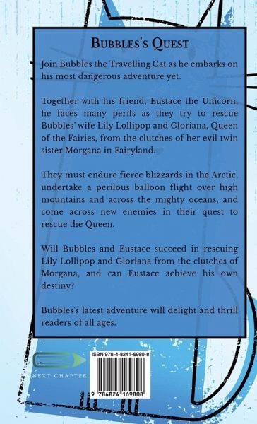 Join Bubbles the Travelling Cat as he embarks on his most dangerous adventure yet. Together with his friend, Eustace the Unicorn, he faces many perils as they try to rescue Bubbles' wife Lily Lollipop and Gloriana, Queen of the Fairies, from the clutches of her evil twin sister Morgana in Fairyland. They must endure fierce blizzards in the Arctic, undertake a perilous balloon flight over high mountains and across the mighty oceans, and come across new enemies in their quest to rescue the Queen. Will Bubbles and Eustace succeed in rescuing Lily Lollipop and Gloriana from the clutches of Morgana, and can Eustace achieve his own destiny? Bubbles's latest adventure will delight and thrill readers of all ages.