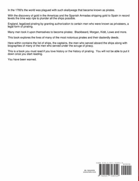 This book details the lives of many of the most famous pirates, Blackbeard, Kidd, Lowe and Morgan and the lives of the ones that were not so well known. It lists the ships they served on and the stories that have not been told for over 100 years. It is a book that you must have if you are a fan of pirates or the history of piracy.