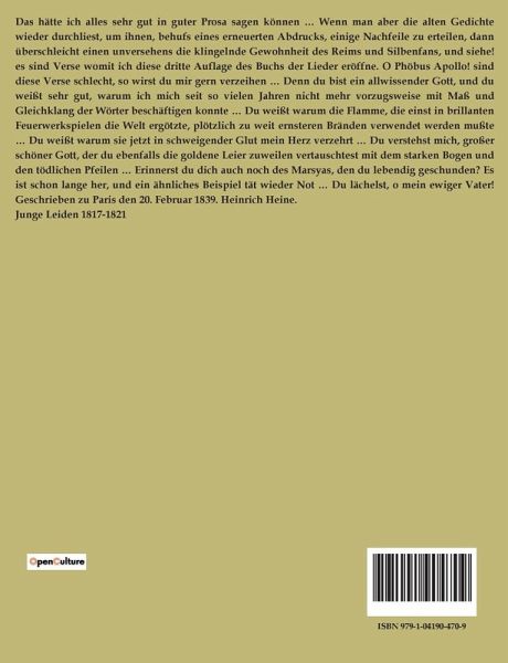 "Buch der Lieder" von Heinrich Heine ist eine Sammlung von Gedichten, die zwischen 1817 und 1827 entstanden sind. Diese Gedichte sind in verschiedene Abschnitte unterteilt, darunter "Junge Leiden", "Lieder", "Romanzen", "Sonette" und "Lyrisches Intermezzo". Heines Werk ist geprägt von einer tiefen Emotionalität und einer intensiven Auseinandersetzung mit Themen wie Liebe, Schmerz, Verlust und Sehnsucht. In "Junge Leiden" reflektiert Heine über die bittersüßen Erfahrungen der Jugendliebe und die damit verbundenen Träume und Enttäuschungen. Die "Lieder" sind von einer melancholischen Stimmung durchzogen und thematisieren oft die unerfüllte Liebe und die Vergänglichkeit des Lebens. In den "Romanzen" erzählt Heine Geschichten von tragischen Helden und verlorenen Seelen, die in einer Welt voller Konflikte und Missverständnisse gefangen sind. Die "Sonette" zeigen Heines Meisterschaft in der klassischen Form und bieten eine tiefgründige Reflexion über persönliche und gesellschaftliche Themen. Das "Lyrische Intermezzo" schließlich ist eine Sammlung von Gedichten, die durch ihre musikalische Sprache und ihre emotionale Tiefe bestechen. Heines "Buch der Lieder" ist ein bedeutendes Werk der deutschen Romantik, das durch seine sprachliche Schönheit und seine universellen Themen besticht.