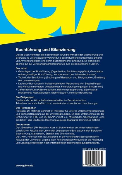Dipl.-Betriebsw. (FH) Benjamin Auer ist Doktorand an der wirtschaftswissenschaftlichen Fakultät der Universität Leipzig sowie Buchautor in den Bereichen Buchführung, Mathematik, Statistik und Ökonometrie. Dipl.-Kfm. Peer Schmidt ist Doktorand an der wirtschaftswissenschaftlichen Fakultät der Universität Leipzig. Sein Forschungsschwerpunkt ist die Abbildung von Leasingverhältnissen nach internationalen Rechnungslegungsstandards. Professor Dr. Matthias Schmidt ist Professor für Externe Unternehmensrechnung und Wirtschaftsprüfung an der Universität Leipzig. Er berät Unternehmen bei der Einführung von IFRS und US-GAAP und ist u.a. Mitglied der Arbeitsgruppe "Consolidation" des Deutschen Rechnungslegungs Standards Committee (DRSC).