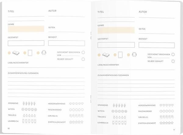Er ist dein persönliches Archiv, in das du jedes Buch, eBook oder Hörbuch, das du gelesen oder gehört hast, festhalten kannst. Hier kannst du deine Bücher ordnen und findest Platz für wichtige Details wie Autor, Lesedatum, persönliche Bewertung, Zitate und Lieblingscharaktere sowie für Gedanken und Emotionen, die das Buch in dir geweckt haben.