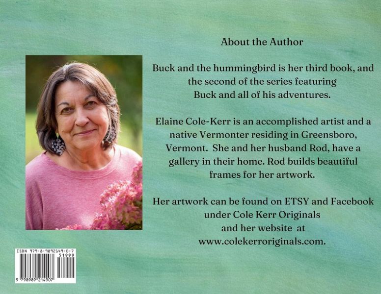 Buck and The Hummingbird is a touching story about the friendship between Buck, a black Labrador retriever and George, a Ruby-throated Hummingbird. Through this friendship, Buck learns about the life and migration of the Hummingbird, and George learns all about Buck's life as a beloved family dog in Vermont.