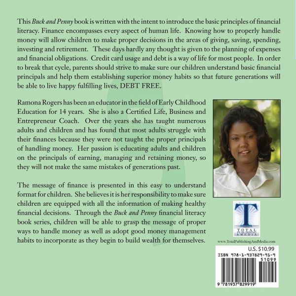 This BUCK AND PENNY book is written with the intent to introduce the basic principles of financial literacy. Because finance encompasses every aspect of human life, knowing how to properly handle money will allow children to make proper decisions in the areas of giving, saving, spending, investing and retirement. Many times little thought is given to the planning of expenses and financial obligations. Credit card usage and debt is a way of life for most people. In order to break that cycle, parents should strive to make sure our children understand basic financial principals and help them establishing superior money habits so that future generations will be able to live happy fulfilling lives, DEBT FREE. Ramona Rogers has been an educator in the field of Early Childhood Education for over 14 years. Her passion and expertise makes for excellent presentation of the financial principles of earning, managing and retaining money in an easy to understand format for children.