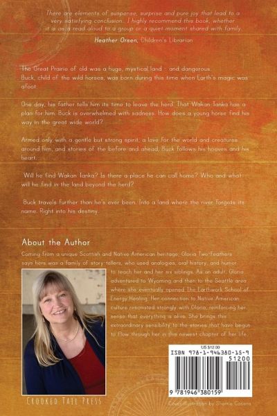 The Great Prairie of old was a huge, mystical land - and dangerous. Buck, child of the wild horses, was born during this time when Earth's magic was afoot. One day, his father tells him its time to leave the herd. That Wakan Tanka has a plan for him. Buck is overwhelmed with sadness. How does a young horse find his way in the great wide world? Armed only with a gentle but strong spirit, a love for the world and creatures around him, and stories of the before and ahead, Buck follows his hooves and his heart. Will he find Wakan Tanka? Is there a place he can call home? Who and what will he find in the land beyond the herd? Buck travels further than he's ever been. Into a land where the river forgets its name. Right into his destiny.
