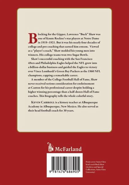 Blocking for the Gipper, Lawrence "Buck" Shaw was one of Knute Rockne's star players at Notre Dame during 1919 through 1921. However, it was his nearly four decades of college and pro coaching that earned him esteem. Viewed as a "player's coach," Shaw was talented at relating to young men and molding them into a winning team. His college teams won two Sugar bowls. Shaw's successful coaching with the San Francisco 49ers and Philadelphia Eagles also played an integral role in helping the NFL grow into a billion-dollar business. A contemporary of Vince Lombardi, Shaw's Eagles won the NFL championship in the pre-Super Bowl era. A member of the College Football Hall of Fame, Shaw never received serious consideration for enshrinement at Canton for his professional career. This complete biography tells the colorful story of Shaw's college and pro years, shedding light on Shaw's over-looked achievements in the professional ranks, which saw him earn a higher winning percentage a half-dozen Hall of Fame coaches.
