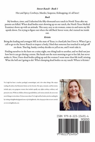 Stover Ranch - Book 1 Hot and Spicy, Cowboys, Murder, Suspense, Kidnapping; it's all here! Buck My brothers, sister, and I inherited the fifty-thousand-acre ranch in North Texas after my parents are killed. When dead bodies start showing up on our ranch, the North Texas Medical Examiner shows up with an attitude. This sassy, sexy as sin woman, comes in and turns my life upside down. I'm trying to figure out where the old Buck Stover went, she's turned me inside out. Kristie Being the leading and youngest ME in the state of Texas, is a hard job, but I love it. When I get a call to go to the…mehr