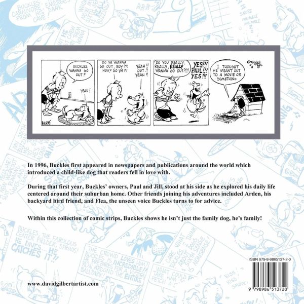 Written and drawn by David Gilbert, Buckles is a comic strip about a wide-eyed dog exploring life with his owners Paul and Jill. Buckles first appeared in newspapers and publications around the world in 1996. This is a collection of the first year of comic strips.