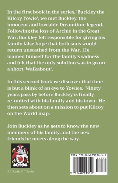In the first book in the series, 'Buckley the Kilcoy Yowie', we met Buckley, the innocent and loveable Dreamtime legend. Following the loss of Archie in the Great War, Buckley felt responsible for giving his family false hope that both sons would return unscathed from the War. He blamed himself for the family's sadness and felt that the only solution was to go on a short 'Walkabout'. In this second book we discover that time is but a blink of an eye to Yowies. Ninety years pass by before Buckley is finally re-united with his family and his town. He then sets about on a mission to put Kilcoy on the World map. Join Buckley as he gets to know the new members of his family, and the new friends he meets along the way.