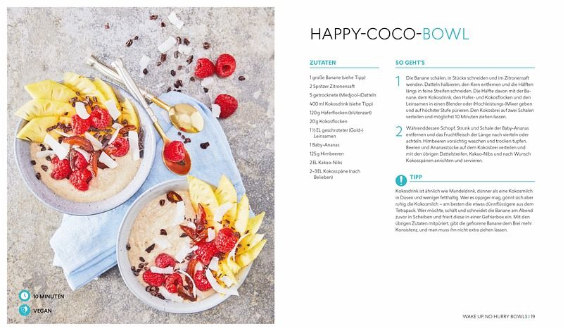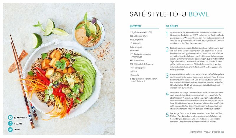 Die über 50 Rezepte bieten eine bunte abwechslungsreiche Mischung an Frühstücks-Bowls, warmen und kalten Bowls. Sowohl Fleischliebhaber als auch Vegetarier und Veganer kommen auf ihre Kosten. Happy Coco-Bowl, Knusper-Kichererbsen-Bowl, Kahyalti-Bowl und Saté-Style-Tofu-Brokkoli-Bowl sind nur eine kleine Auswahl der köstlichen Gerichte. Auch Poke Bowls, der Foodtrend aus Hawaii, wird in 8 köstlichen Rezepten präsentiert.