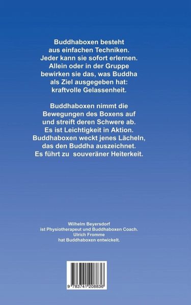 Buddhaboxen besteht aus einfachen Techniken. Jeder kann sie sofort erlernen. Allein oder in der Gruppe bewirken sie das, was Buddha als Ziel ausgegeben hat: kraftvolle Gelassenheit. Buddhaboxen nimmt die Bewegungen des Boxens auf und streift deren Schwere ab. Es ist Leichtigkeit in Aktion. Buddhaboxen weckt jenes Lächeln, das den Buddha auszeichnet. Es führt zu souveräner Heiterkeit.