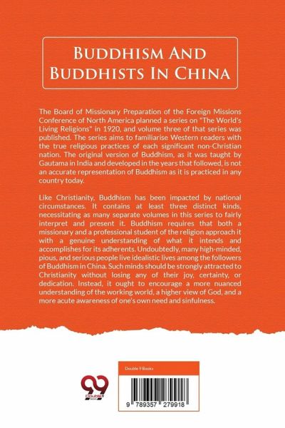 The Board of Missionary Preparation of the Foreign Missions Conference of North America planned a series on ""The World's Living Religions"" in 1920, and volume three of that series was published. The series aims to familiarise Western readers with the true religious practices of each significant non-Christian nation. The original version of Buddhism, as it was taught by Gautama in India and developed in the years that followed, is not an accurate representation of Buddhism as it is practiced in any country today. Like Christianity, Buddhism has been impacted by national circumstances. It contains at least three distinct kinds, necessitating as many separate volumes in this series to fairly interpret and present it. Buddhism requires that both a missionary and a professional student of the religion approach it with a genuine understanding of what it intends and accomplishes for its adherents. Undoubtedly, many high-minded, pious, and serious people live idealistic lives among the followers of Buddhism in China. Such minds should be strongly attracted to Christianity without losing any of their joy, certainty, or dedication. Instead, it ought to encourage a more nuanced understanding of the working world, a higher view of God, and a more acute awareness of one's own need and sinfulness.