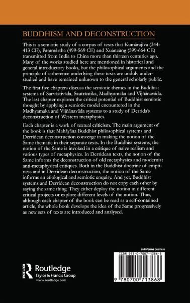 Introduction: The pursuit of signs; Chapter 1 Three grades of understanding in the H?nay?na analytic system: A structural study of the list of seventy-five factors; Chapter 2 Undoing the H?nay?na Onto-epistemological categories: A semiotic approach to the list of eighteen points about emptiness; Chapter 3 Three ways of looking at the un-arisen: The Same in Kum?raj?va's Madhyamaka system; Chapter 4 Dialectic of construction and de-construction in the Vijñ?nav?da system: The Same in Param?rtha's Shèlùn system; Chapter 5 Deconstruction of time in Dharmap?la's commentary on ?ryadeva's Treatise in Four Hundred Verses: The Same in Xuánzàng's F?xiàng system; Chapter 6 Three ways of looking at the un-arisen in French deconstruction: Derrida's conception of the Same; Chapter 7 Afterword: Three semiotic models;