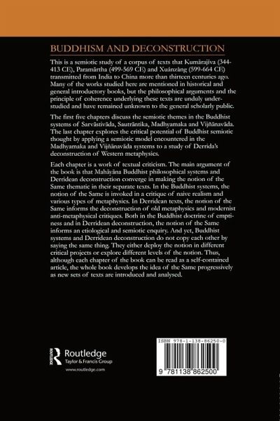 Introduction: The pursuit of signs; Chapter 1 Three grades of understanding in the H?nay?na analytic system: A structural study of the list of seventy-five factors; Chapter 2 Undoing the H?nay?na Onto-epistemological categories: A semiotic approach to the list of eighteen points about emptiness; Chapter 3 Three ways of looking at the un-arisen: The Same in Kum?raj?va's Madhyamaka system; Chapter 4 Dialectic of construction and de-construction in the Vijñ?nav?da system: The Same in Param?rtha's Shèlùn system; Chapter 5 Deconstruction of time in Dharmap?la's commentary on ?ryadeva's Treatise in Four Hundred Verses: The Same in Xuánzàng's F?xiàng system; Chapter 6 Three ways of looking at the un-arisen in French deconstruction: Derrida's conception of the Same; Chapter 7 Afterword: Three semiotic models;
