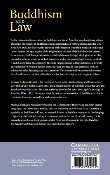 As the first comprehensive study of Buddhism and law in Asia, this interdisciplinary volume challenges the concept of Buddhism as an apolitical religion without implications for law. Buddhism and Law draws on the expertise of the foremost scholars in Buddhist studies and in law to trace the legal aspects of the religion from the time of the Buddha to the present. In some cases, Buddhism provided the crucial architecture for legal ideologies and secular law codes, while in other cases it had to contend with a pre-existing legal system, to which it added a new layer of complexity. The wide-ranging studies in this book reveal a diversity of relationships between Buddhist monastic codes and secular legal systems in terms of substantive rules, factoring, and ritual practices. This volume will be an essential resource for all students and teachers in Buddhist studies, law and religion, and comparative law.