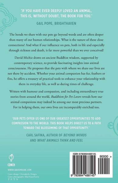 The bonds we share with our pets go beyond words and are often deeper than many of our human relationships. What is the nature of these close connections? And what if our influence on pets, both in life and especially through sickness and death, is far more powerful than we ever conceived?David Michie draws on ancient Buddhist wisdom, supported by contemporary science, to provide fascinating insights into animal consciousness. He proposes that the pets with whom we share our lives are not there by accident. Whether your animal companion has fur, feathers or fins, he offers a treasury of practical tools to enhance your relationship with them in everyday life, as well as during times of challenge.Written with humour and compassion, and including extraordinary true stories from around the world, Buddhism for Pet Lovers reveals how our animal companions may indeed be among our most precious partners. For in helping them, our own lives are incomparably enriched too.'If you have ever deeply loved an animal, this is, without doubt, the book for you.' Gail Pope, BrightHaven'Our pets offer us one of our greatest opportunities to add compassion to the world. This book helps direct us to a path toward the blossoming of that opportunity.' Carl Safina, author of Beyond Words, and What Animals Think and Feel