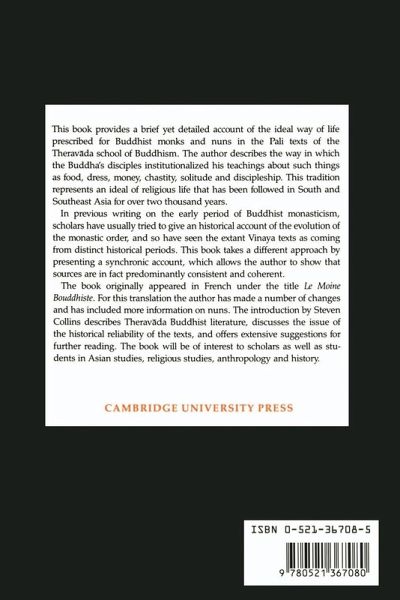This book provides a vivid and detailed picture of the daily life and religious practices of Buddhist monks and nuns in the classic period of Theravada Buddhism. The author describes the way in which the Buddha's disciples institutionalized and ritualized his teachings about food, dress, money, chastity, solitude, and discipleship. This tradition represents an ideal of religious life that has been followed in India and South Asia for more than two thousand years. The introduction by Steven Collins describes Theravada Buddhist literature, discusses the issue of the historical reliability of the texts, and offers extensive suggestions for further reading. The book will be of interest to scholars and students in Asian studies, religious studies, anthropology, and history.