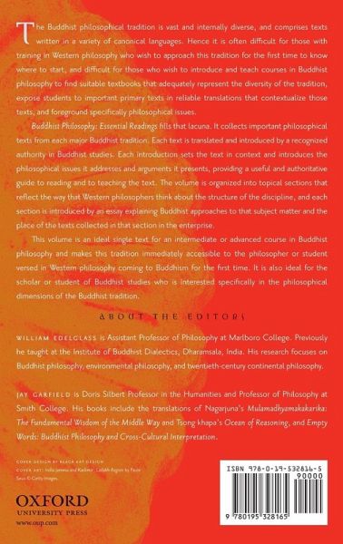 William Edelglass is Assistant Professor of Philosophy at Marlboro College. Previously he taught at the Institute of Buddhist Dialectics, Dharamsala, India. His research focuses on Buddhist philosophy, environmental philosophy, and twentieth century continental philosophy. Jay Garfield is Doris Silbert Professor in the Humanities and Professor of Philosophy at Smith College. His books include the translations of Nagarjuna's Mulamadhyamakakarika: The Fundamental Wisdom of the Middle Way (OUP, 1995); Tsong khapa's Ocean of Reasoning (OUP, 2002), and Empty Words: Buddhist Philosophy and Cross-Cultural Interpretation (OUP, 2006).