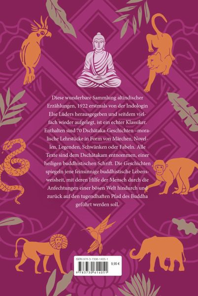 Diese wunderbare Sammlung altindischer Erzählungen, 1922 erstmals von der Indologin Else Lüders herausgegeben und seitdem vielfach wieder aufgelegt, ist ein echter Klassiker. Enthalten sind 70 Jataka-Geschichten - moralische Lehrstücke in Form von Märchen, Novellen, Legenden, Schwänken oder Fabeln. Alle Texte sind dem Dschatakam entnommen, einer heiligen buddhistischen Schrift. Die Geschichten spiegeln jene feinsinnige buddhistische Lebensweisheit, mit deren Hilfe der Mensch durch die Anfechtungen einer bösen Welt hindurch und zurück auf den tugendhaften Pfad des Buddha geführt werden soll.