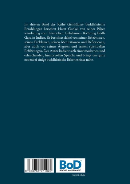 Im dritten Band der Reihe Gelnhäuser buddhistische Erzählungen berichtet Horst Gunkel von seiner Pilgerwanderung vom hessischen Gelnhausen Richtung Bodh Gaya in Indien. Er berichtet dabei von seinen Erlebnissen, seinen Problemen, seinen Meditationen und Reflexionen, aber auch von seinen Ängsten und seinen spirituellen Erfahrungen. Der Autor bedient sich einer modernen und erfrischenden, humorvollen Sprache und bringt uns ganz nebenbei einige buddhistische Erkenntnisse nahe.