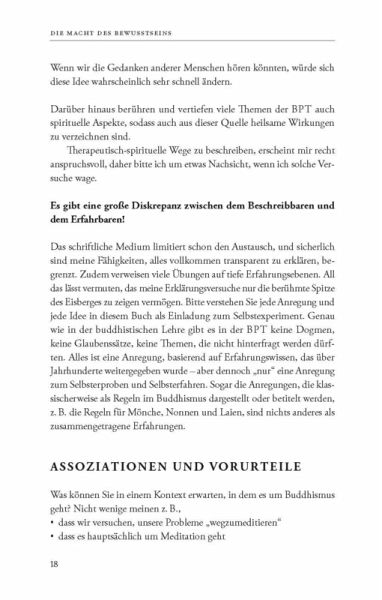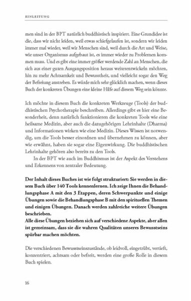 Mit der Buddhistischen Psychotherapie finden wir eine ganzheitliche Therapieform, die auch Spiritualität integriert und damit einen Weg sowohl für die eigene Weiterentwicklung, als auch für die therapeutische Arbeit eröffnet.Ihr besonderer Aspekt liegt darin, konkrete Übungen zu zeigen, welche Schritt für Schritt, von den ersten Übungen zur Stabilisierung, über weitere zur Symptomauflösung, bis zu den tiefsten Befreiungszuständen führen können.Dieses Buch ist ein wahrer Fundus für jeden Suchenden oder Begleitenden. Es lässt den Prozess wunderbar nachvollziehen und bietet ein vielseitiges Nachschlagewerk mit über 140 Übungen zur direkten Anwendung.»Sie halten das Übungsbuch der Buddhistischen Psychotherapie (BPT) in den Händen. Es stellt die Quintessenz meiner 30-jährigen therapeutischen Arbeit dar. Sie finden deshalb eine große Auswahl konkreter Übungen vor, die hilfreicher Weise aufeinander folgenden Behandlungsphasen zugeordnet sind. So dürfen Sie sich sicher geleitet fühlen.« Dr. Matthias Ennenbach