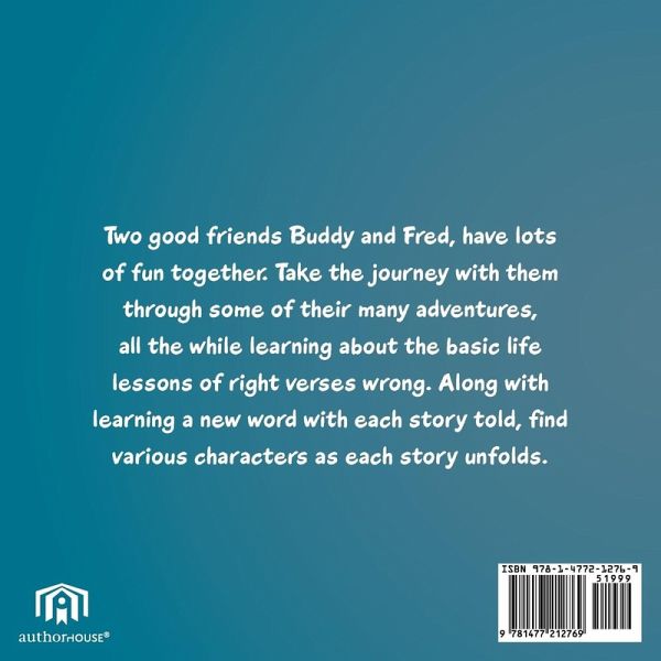 Two good friends Buddy and Fred, have lots of fun together. Take the journey with them through some of their many adventures, all the while learning about the basic life lessons of right verses wrong. Along with learning a new word with each story told, find various characters as each story unfolds.