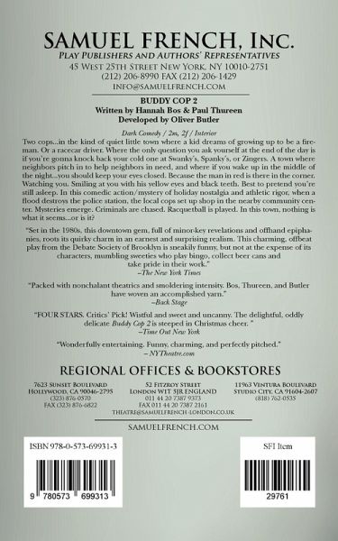 Dark Comedy Characters: 2 male, 2 female Interior Two cops...in the kind of quiet little town where a kid dreams of growing up to be a fireman. Or a racecar driver. Where the only question you ask yourself at the end of the day is if you're gonna knock back your cold one at Swanky's, Spanky's, or Zingers. A town where neighbors pitch in to help neighbors in need, and where if you wake up in the middle of the night...you should keep your eyes closed. Because the man in red is there in th