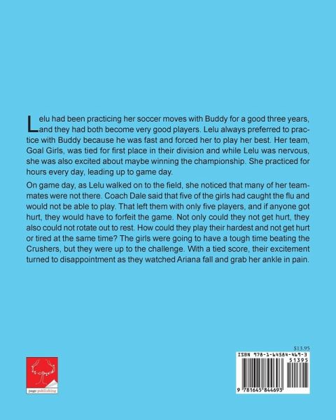 Lelu had been practicing her soccer moves with Buddy for a good three years, and they had both become very good players. Lelu always preferred to practice with Buddy because he was fast and forced her to play her best. Her team, Goal Girls, was tied for first place in their division and while Lelu was nervous, she was also excited about maybe winning the championship. She practiced for hours every day, leading up to game day. On game day, as Lelu walked on to the field, she noticed that many of her teammates were not there. Coach Dale said that five of the girls had caught the flu and would not be able to play. That left them with only five players, and if anyone got hurt, they would have to forfeit the game. Not only could they not get hurt, they also could not rotate out to rest. How could they play their hardest and not get hurt or tired at the same time? The girls were going to have a tough time beating the Crushers, but they were up to the challenge. With a tied score, their excitement turned to disappointment as they watched Ariana fall and grab her ankle in pain.