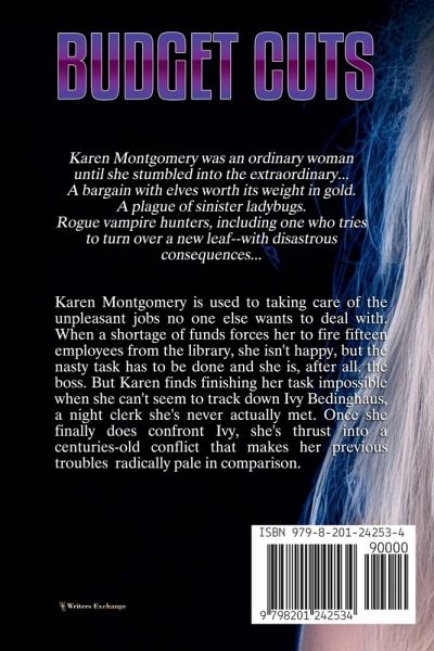 Karen Montgomery was an ordinary woman until she stumbled into the extraordinary... A bargain with elves worth its weight in gold. A plague of sinister ladybugs. Rogue vampire hunters, including one who tries to turn over a new leaf--with disastrous consequences. A ghostly huntsman of the Wild Hunt wishing for redemption. Karen's life will never be the same again. Karen Montgomery is used to taking care of the unpleasant jobs no one else wants to deal with. When a shortage of funds forces her to fire fifteen employees from the library, she isn't happy, but the nasty task has to be done and she is, after all, the boss. But Karen finds finishing her task impossible when she can't seem to track down Ivy Bedinghaus, a night clerk she's never actually met. Once she finally does confront Ivy, she's thrust into a centuries-old conflict that makes her previous troubles radically pale in comparison.