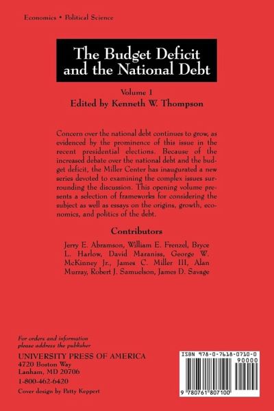 The Budget Deficit and National Debt analyzes and attempts to better understand the problems associated with the debt and deficit. The theme of this book parallels the Miller Center's primary focus on governance and the presidency. The president is a key actor in submitting, approving, and administrating the budget. Therefore, the study of debt and deficit is in keeping with the Miller Center's focus on governance and the presidency.