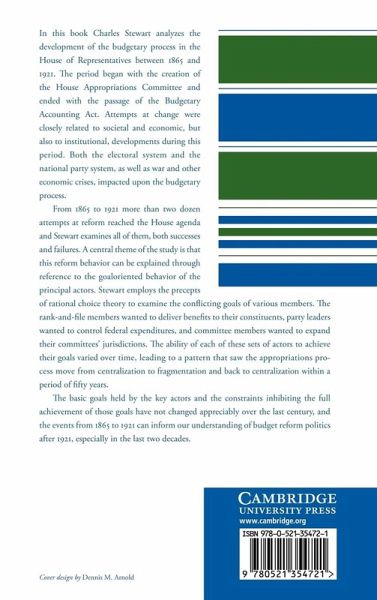 In this 1989 book Charles Stewart analyses the development of the budgetary process in the House of Representatives between 1865 and 1921. The period began with the creation of the House Appropriations Committee and ended with the passage of the Budgetary Accounting Act. Attempts at change were closely related to societal and economic, but also to institutional, developments during this period. Both the electoral system and the national party system, as well as war and other economic crises, impacted upon the budgetary process.