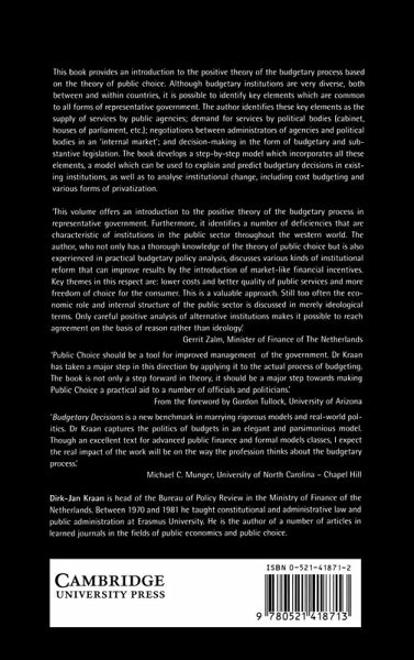 Budgetary Decisions provides an introduction to the positive theory of the budgetary process based on the theory of public choice. The author develops a step-by-step model which can be used to explain and predict budgetary decisions in existing institutions, as well as to analyze institutional change, including cost budgeting and various forms of privatization.