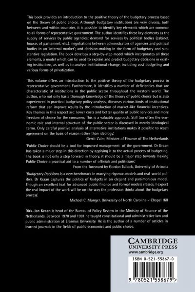 Budgetary Decisions provides an introduction to the positive theory of the budgetary process based on the theory of public choice. The author develops a step-by-step model which can be used to explain and predict budgetary decisions in existing institutions, as well as to analyze institutional change, including cost budgeting and various forms of privatization.