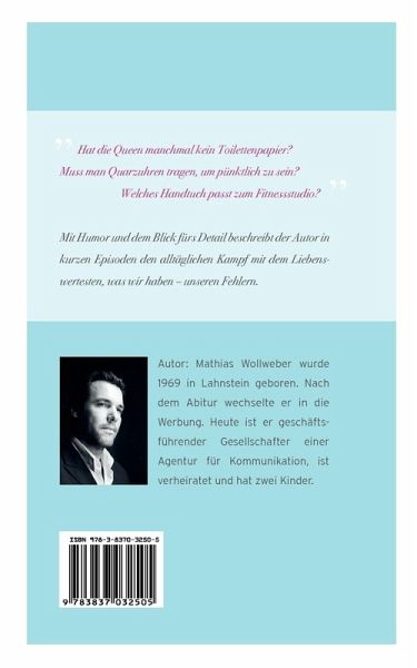 Hat die Queen manchmal kein Toilettenpapier? Muss man Digitaluhren tragen, um pünktlich zu sein? Welches Handtuch passt zum Fitnessstudio? Mit Humor und dem Blick fürs Detail beschreibt der Auto in kurzen Episoden den alltäglichen Kampf mit dem Liebenswertesten, was wir haben: unseren Fehlern.