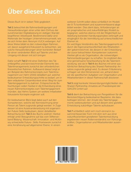 Der War of Talents hat sich verändert, die Gewinnung, Bindung und Entwicklung von Mitarbeitenden ist heute aufgrund der Digitalisierung Dynamiken unterworfen, die schneller und kurz- zeitiger als bisher sind. Arbeitsweisen und Technologien verändern sich laufend, Unternehmen müssen weiterhin wettbewerbsfähig bleiben. Es stellt sich die Frage, ob das klassische Talentmanagement ausgedient hat. Dieses Buch versucht den Talentbegriff aktueller zu fassen und bezieht die Rahmenbedingungen und Herausforderungen einer unter dem Einfluss der zunehmenden Digitalisierung im stetigen Wandel begriffenen Arbeitswelt ein. Auf diese Weise bildet es den notwendigen Rahmen, um davon ausgehend fokussiert zu betrachten, wie solche Herausforderungen einen konkreten Bedarf für einen veränderten Blick auf Talente und den Umgang mit diesen mit sich bringen. Schrittweise wird sich dem Begriff des Talentengagement genähert und ein Fokus auf die Kompetenzen, welche der Kennzeichnung einer Person als Talent zugrunde gelegt werden, gesetzt. Anhand eines Praxisbeispiels wird sich zudem konkret mit dem Shared-Partnership-Ansatz auseinandergesetzt. Letztlich wird auf die zukunftsorientiert gestaltete Talententwicklung verwiesen und das sich daraus ergebenden neuen Rollenverständnis von Führungskräften, Organisationen und Mitarbeitenden aufgezeigt.