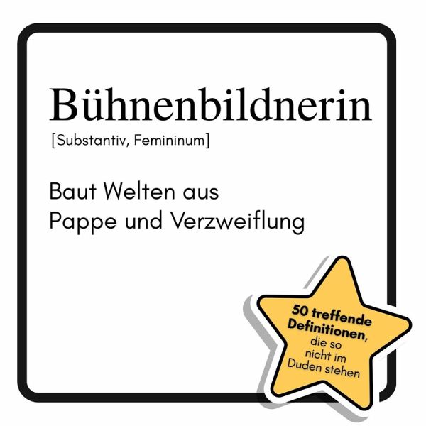 Wenn der Bühnenboden wackelt, das Budgetloch gähnt und die Kaffeemaschine streikt, beginnt die wahre Magie hinter den Kulissen. "Bühnenbildnerin: Baut Welten aus Pappe und Verzweiflung" entlarvt mit spitzer Feder und scharfem Blick die skurrile Realität des Theateralltags - von Gaffa Tape bis Souffleuse, von Trockeneisnebel bis Premierenpanik.Für wen dieses Buch perfekt ist:- Für Theaterliebhaber mit Sinn für Selbstironie- Für Bühnenprofis, die den Wahnsinn kennen und lieben- Für alle, die wissen wollen, was wirklich hinter dem Vorhang passiertMit 50 pointierten Definitionen und witzigen Illustrationen wird der Kosmos der Bühnenbildnerin humorvoll seziert. Ein Buch, das zeigt, wie aus Pappmaché, Sperrholz und einer Prise Verzweiflung große Theaterwelten entstehen.Was dieses Buch bietet:- 50 humorvolle Definitionen aus dem Bühnenalltag- Passende Illustrationen zu jedem Begriff- Einblicke in die skurrile Welt hinter den Kulissen- Ideales Geschenk für Theaterfans und Kreative