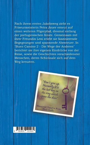 Nach ihrem ersten Jakobsweg zieht es Friseurmeisterin Petra Jauer erneut auf einen weiteren Pilgerpfad, diesmal entlang der portugiesischen Küste. Gemeinsam mit ihrer Freundin Leni erlebt sie faszinierende Begegnungen und spannende Abenteuer. In "Buen Camino 2 - Die Wege der Anderen" berichtet sie ihre eigenen Eindrücke von der Reise, sowie die Geschichten verschiedenster Menschen, deren Schicksale sich auf dem Weg kreuzten.