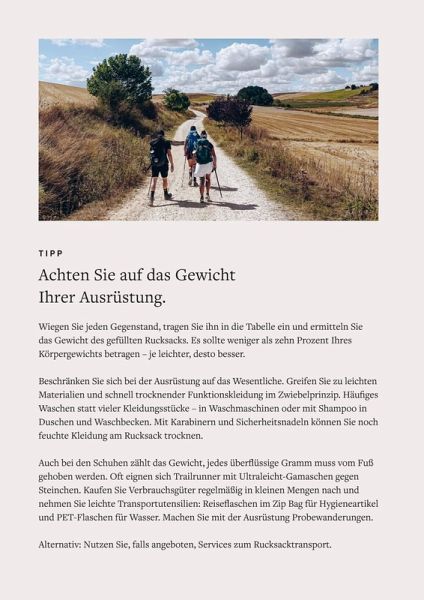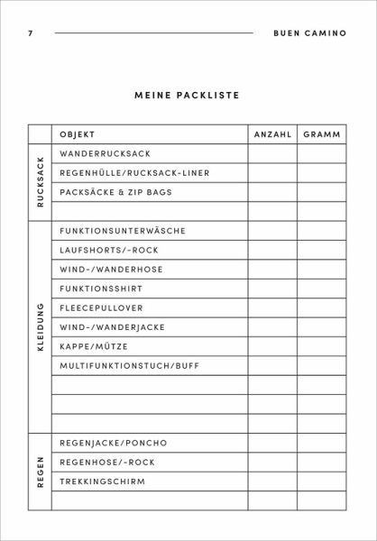 Ein Jakobsweg ist eine Reise, die Herz und Beine bewegt. Mit diesem Buch halten Sie Ihre einmaligen Eindrücke und Erlebnisse fest. Buen Camino ist ein praktisches und logisch aufgebautes Pilgertagebuch: Im Startteil bereiten Sie Ihren Jakobsweg vor, im Hauptteil schreiben Sie in einer täglichen Struktur Ihre Impressionen während der Pilgerreise nieder, und im Schlussteil reflektieren Sie Ihren Camino.Das Buch gibt es in zwei Ausführungen. Nehmen Sie für bis zu drei Wochen lange Pilgerungen Buen Camino - 21 Etappen, für längere Buen Camino - 42 Etappen. Die vorliegende Version eignet sich für Jakobswege wie: Caminho Português, Camino Primitivo, Camino Inglés, Mosel- und Eifel-Camino.- praktisches Tagebuch für zukünftige Pilger auf einer Reise, die Herz und Beine bewegt- tägliche Struktur mit Raum für persönliche Eindrücke plus Vorbereitungsteil- für Pilgerwege bis maximal 21 Tagesetappen/3 Wochen, wie Caminho Português, Camino Primitivo und Camino Inglés, Mosel- und Eifel-Camino- Highlights: robustes Material, geringes Gewicht und hochwertiges Design, Fadenheftung, Lesebändchen und Einschubtasche für Pilgerausweis- perfektes Geschenk für alle angehenden Pilger mit großen Plänen