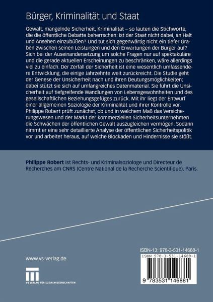 Gewalt, mangelnde Sicherheit, Kriminalität - so lauten die Stichworte, die die öffentliche Debatte beherrschen: Ist der Staat nicht dabei, an Halt und Ansehen einzubüßen? Und tut sich gegenwärtig nicht ein tiefer Graben zwischen seinen Leistungen und den Erwartungen der Bürger auf? Sich bei der Auseinandersetzung um solche Fragen nur auf spektakuläre und die gerade aktuellen Erscheinungen zu beschränken, wäre allerdings viel zu einfach. Der Zerfall der Sicherheit ist eine wesentlich umfassendere Entwicklung, die einige Jahrzehnte weit zurückreicht. Die Studie geht der Genese der Unsicherheit nach und ihren Deutungsmöglichkeiten; dabei stützt sie sich auf umfangreiches Datenmaterial. Sie führt die Unsicherheit auf tiefgreifende Wandlungen von Lebensgewohnheiten und des gesellschaftlichen Beziehungsgefüges zurück. Mit ihr liegt der Entwurf einer allgemeinen Soziologie der Kriminalität und ihrer Kontrolle vor. Philippe Robert prüft zunächst, ob und in welchem Maß das Versicherungwesen und der Markt der kommerziellen Sicherheitsunternehmen die Schwächen der öffentlichen Gewalt auszugleichen vermögen. Sodann nimmt er eine sehr detaillierte Analyse der öffentlichen Sicherheitspolitik vor und arbeitet heraus, auf welche Blockaden und Hindernisse sie stößt.