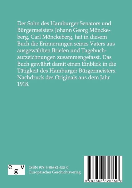 Der Sohn des Hamburger Senators und Bürgermeisters Johann Georg Mönckeberg, Carl Mönckeberg, hat in diesem Buch die Erinnerungen seines Vaters aus ausgewählten Briefen und Tagebuchaufzeichnungen zusammengefasst. Das Buch gewährt damit einen Einblick in die Tätigkeit des Hamburger Bürgermeisters. Nachdruck des Originals aus dem Jahr 1918.