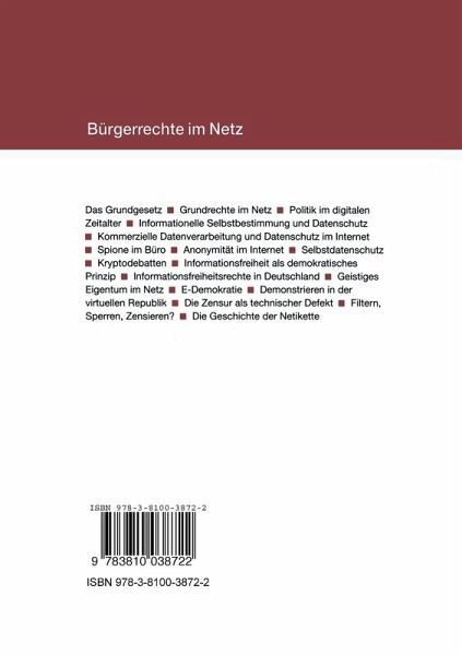 Rudolf Wassermann, Das Grundgesetz: Anspruch und Verpflichtung - Johann Bizer, Grundrechte im Netz Von der freien Meinungsäußerung bis zum Recht auf Eigentum - Ingo Ruhmann, Politik im digitalen Zeitalter - Hansjürgen Garstka, Informationelle Selbstbestimmung und Datenschutz- Das Recht auf Privatsphäre - Thomas Bernhard Petri, Die kommerzielle Datenverarbeitung und der Datenschutz im Internet - Manuel Kiper, Spione im Büro Überwachung am Arbeitsplatz - Patrick Goltzsch, Anonymität im Internet. Die technische Verteidigung eines Grundrechts - Marit Hansen/Christian Krause, Selbstdatenschutz- Sicherheit im Eigenbau - Ingo Ruhmann/Christiane Schulzki-Haddouti, Kryptodebatten. Der Kampf um die Informationshoheit - Christiane Schulzki-Haddouti/ Manfred Redelfs, Informationsfreiheit als demokratisches Prinzip - Manfred Redelfs, Der langsame Abschied vom Amtsgeheimnis . Informationsfreiheitsrechte in Deutschland - Detlef Kröger, Zwischen Industrierecht und Kulturgut. Geistiges Eigentum im Netz - Burkhard Ewert/Nermin Fazlic/ Johannes Kollbeck, E-Demokratie Stand, Chancen, Risiken - Armin Medosch, Demonstrieren in der virtuellen Republik. Politischer Aktivismus im Internet gegen staatliche Institutionen und privatwirtschaftliche Unternehmen - Lorenz Lorenz-Meyer, Die Zensur als technischer Defekt. Der Gilmore-Mythos - Ute Bernhardt, Filtern, Sperren, Zensieren? Vom Umgang mit unliebsamen Inhalten im Internet - Martin Goldmann, Dear Emily Postnews. Die Geschichte der Nettikette