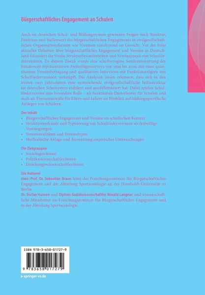 Auch im deutschen Schul- und Bildungssystem gewinnen Fragen nach Struktur, Funktion und Stellenwert des bürgerschaftlichen Engagements in zivilgesellschaftlichen Organisationsformen wie Vereinen zunehmend an Gewicht. Vor der Folie aktueller Debatten über bürgerschaftliches Engagement und Vereine in Deutschland fokussiert die Studie Strukturbesonderheiten und Vereinspraxis von Schulfördervereinen. Zu diesem Zweck wurde eine schulbezogene Sonderauswertung der bundesweit repräsentativen Freiwilligensurveys von 1999 bis 2009 mit einer quantitativen Vereinsbefragung und qualitativen Interviews mit Funktionsträgern von Schulfördervereinen verknüpft. Die Analysen lassen erkennen, dass sich in den letzten zwei Jahrzehnten eine weitreichende zivilgesellschaftliche Infrastruktur im deutschen Schulsystem etabliert und ausdifferenziert hat. Dabei spielen Schulfördervereine eine besondere Rolle - als funktionale Dienstleister für Schulen und auch als Themenanwälte für Eltern und Lehrer im Hinblick auf bildungsspezifische Anliegen von Schülern.