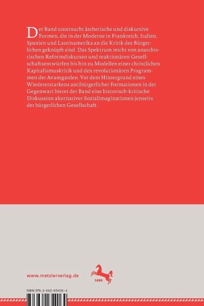 Der Band untersucht ästhetische und diskursive Formen, die in der Moderne an die Kritik des Bürgerlichen geknüpft sind. Der Fokus richtet sich auf Beispiele aus Frankreich, Italien und Spanien sowie aus Lateinamerika. Diese kulturvergleichende Perspektive auf Dimensionen von Antibürgerlichkeit eröffnet neue Lesarten eines zentralen Themas der Moderne. Die Bandbreite der Analysen umfasst die ästhetischen Dimensionen von anarchistischen Reformdiskursen und reaktionären Gesellschaftsentwürfen ebenso wie von Modellen einer christlichen Kapitalismuskritik oder der revolutionären Programme der Avantgarden. Vor dem Hintergrund eines Wiedererstarkens antibürgerlicher Formationen in der Gegenwart bietet der Band eine historisch-kritische Diskussion alternativer Sozialimaginationen jenseits der bürgerlichen Gesellschaft.