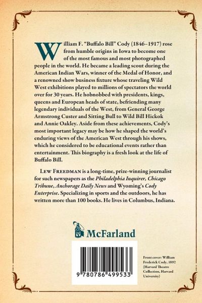 William F. "Buffalo Bill" Cody (1846-1917) rose from humble origins in Iowa to become one of the most famous and most photographed people in the world. He became a leading scout during the American Indian Wars, winner of the Congressional Medal of Honor, and a renowned show business fixture whose traveling Wild West exhibitions played to millions of spectators the world over for 30 years. He hobnobbed with presidents, kings, queens and European heads of state, befriending many legendary individuals of the West, from General George Armstrong Custer and Sitting Bull to Wild Bill Hickok and Annie Oakley. Aside from these achievements, Cody's most important legacy may be how he shaped the world's enduring views of the American West through his shows, which he considered to be educational events rather than entertainment. This biography is a fresh look at the life of Buffalo Bill.