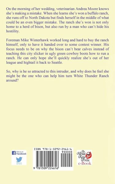 On the morning of her wedding, veterinarian Andrea Moore knows she's making a mistake. When she learns she's won a buffalo ranch, she runs off to North Dakota but finds herself in the middle of what could be an even bigger mistake. The ranch she's won is not only home to a herd of bison, but also run by a man who can't hide his hostility. Foreman Mike Winterhawk worked long and hard to buy the ranch himself, only to have it handed over to some contest winner. His focus needs to be on why the bison can't bear calves instead of teaching this city slicker in ugly green cowboy boots how to run a ranch. He can only hope she'll quickly realize she's out of her league and hightail it back to Seattle. So, why is he so attracted to this intruder, and why does he feel she might be the one who can help him turn White Thunder Ranch around?