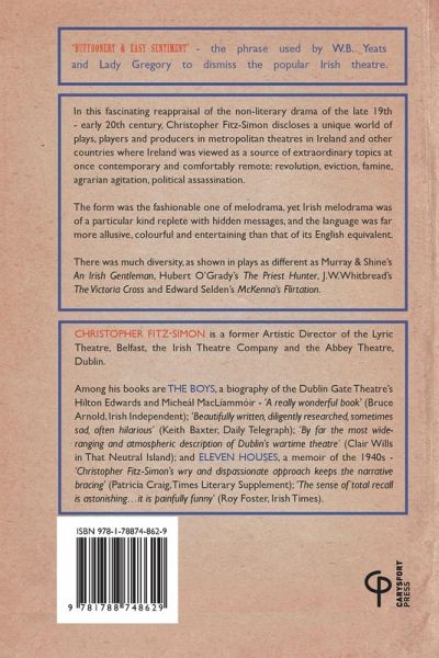 In this fascinating reappraisal of the non-literary drama of the late 19th - early 20th century, Christopher Fitz-Simon discloses a unique world of plays, players and producers in metropolitan theatres in Ireland and other countries where Ireland was viewed as a source of extraordinary topics at once contemporary and comfortably remote: revolution, eviction, famine, agrarian agitation, political assassination.