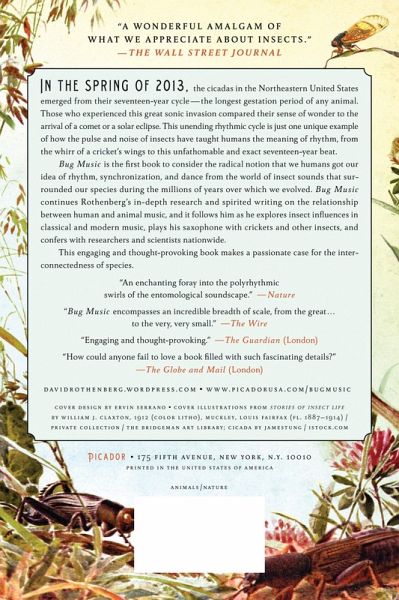 In the spring of 2013, the cicadas in the Northeastern United States emerged from their seventeen-year cycle-the longest gestation period of any animal. Those who experienced this great sonic invasion compared their sense of wonder to the arrival of a comet or a solar eclipse. This unending rhythmic cycle is just one unique example of how the pulse and noise of insects has taught humans the meaning of rhythm, from the whirr of a cricket's wings to this unfathomable and exact seventeen-year beat. Bug Music is the first book to consider the radical notion that we humans got our idea of rhythm, synchronization, and dance from the world of insect sounds that surrounded our species over the millions of years over which we evolved. Bug Music continues Rothenberg's in-depth research and spirited writing on the relationship between human and animal music, and it follows him as he explores insect influences in classical and modern music, plays his saxophone with crickets and other insects, and confers with researchers and scientists nationwide. This engaging and thought-provoking book makes a passionate case for the interconnectedness of species.