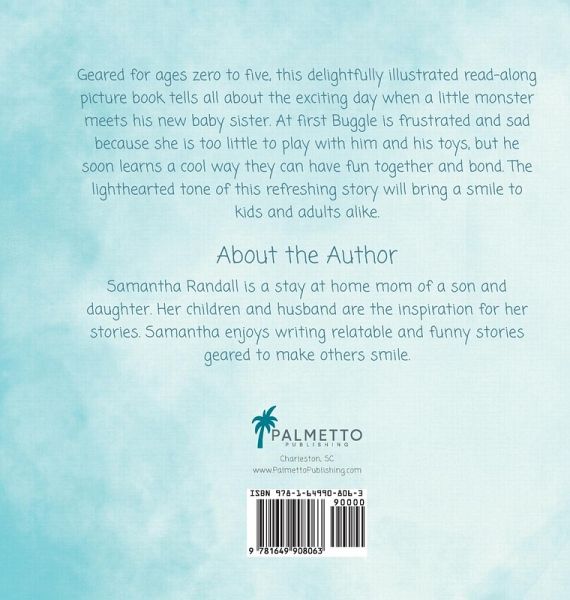 Geared for ages zero to five, this delightfully illustrated read-along picture book tells all about the exciting day when a little monster meets his new baby sister. At first Buggle is frustrated and sad because she is too little to play with him and his toys, but he soon learns a cool way they can have fun together and bond. The lighthearted tone of this refreshing story will bring a smile to kids and adults alike.