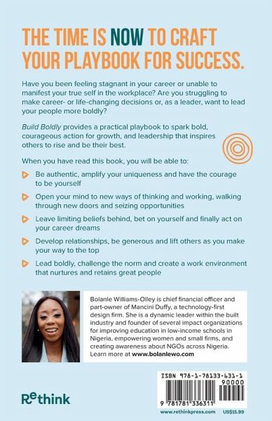 The time is now to craft your playbook for success. Have you been feeling stagnant in your career or unable to manifest your true self in the workplace? Are you struggling to make career- or life-changing decisions or, as a leader, want to lead your people more boldly? Build Boldly provides a practical playbook to spark bold, courageous action for growth, and leadership that inspires others to rise and be their best. When you have read this book, you will be able to: Be authentic, amplify your uniqueness and have the courage to be yourself Open your mind to new ways of thinking and working, walking through new doors and seizing opportunities Leave limiting beliefs behind, bet on yourself and finally act on your career dreams Develop relationships, be generous and lift others as you make your way to the to Lead boldly, challenge the norm and create a work environment that nurtures and retains great people