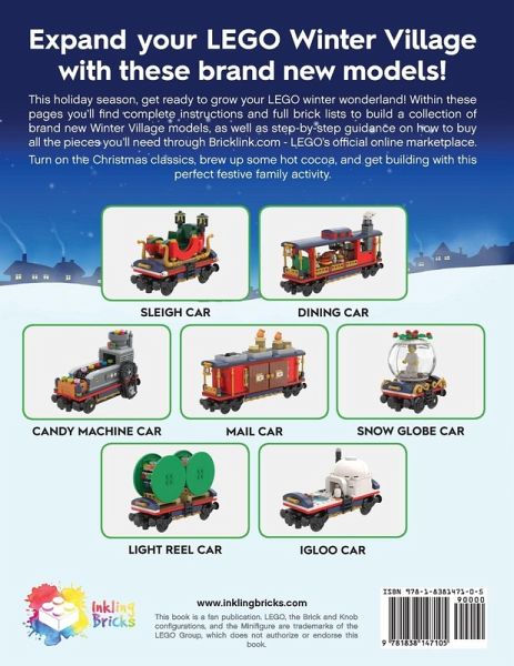 Expand your LEGO Winter Village with these brand new models! This holiday season, get ready to grow your LEGO winter wonderland! Within these pages you'll find complete instructions and full brick lists to build a collection of brand new Winter Village models, as well as step-by-step guidance on how to buy all the pieces you'll need through Bricklink.com - LEGO's official online marketplace. In this book, expand the ultimate Christmas train with instructions for:a Sleigh Car a Dining Car a Candy Machine Car a Mail Car a Snow Globe Car a Light Reel Car an Igloo Car Turn on the Christmas classics, brew up some hot cocoa, and get building with this perfect festive family activity.