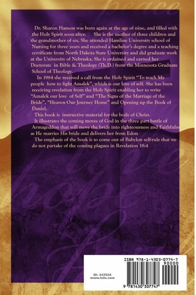 This book is instructive material for the body of Christ. It illustrates the coming moves of God in the three part battle of Armageddon which will move the bride into righteousness and Faithfulness. as He marries His bride and delivers her from Edon The emphasis of the book is to come out of Babylon self-rule that we do not partake of the coming plagues in Revelation 18:4